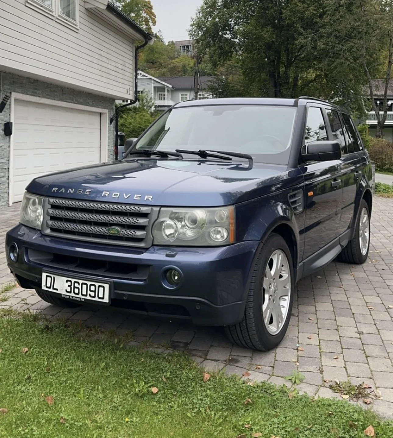 Range Rover Sport 2006. Mørk blå, med hud interiør.