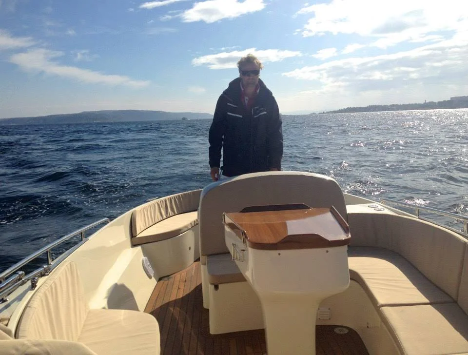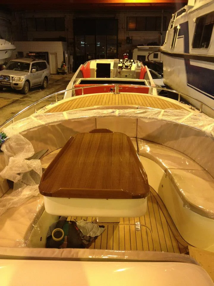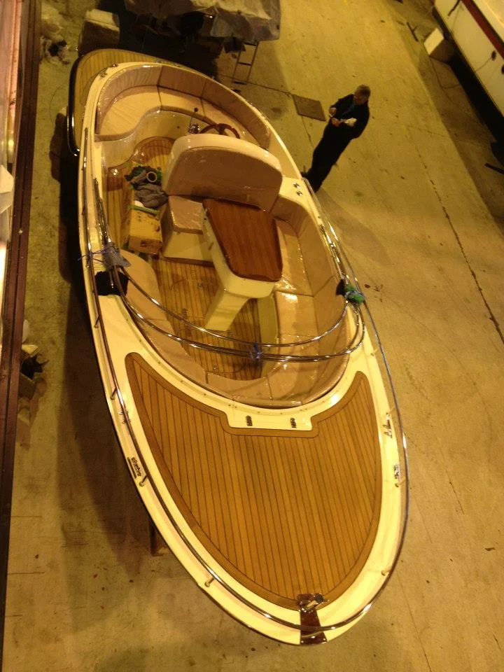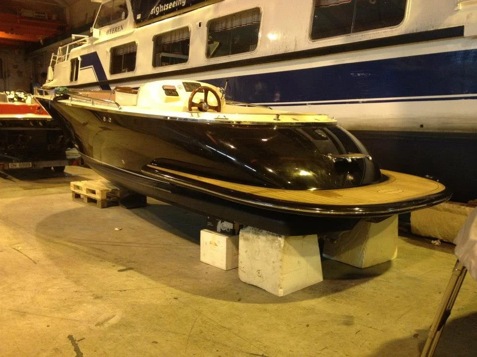 På akterendens vakre bue er lanternen integrert i båtens logo, samt et leidertrinn for å lette adkomsten ned til den store badeplattformen med integrert badeleider. Kommer ruskeværet drar man opp kalesjen som dekker fra pigg helt frem til styrekonsollen slik at styrmann fremdeles kan stå og se ut.